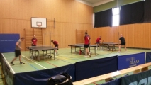 In einem umkämpften Wettbewerb setzten sich Marco und Nikola Jäckel durch. Vor der Meisterschaftsfeier der 1. Mannschaft ging es am Samstag, den 26.4. von 15 bis 18.30 Uhr im Teamwettbewerb nach dem Modus 1-1, 2-2 und Doppel um den Titel. Nach den Gruppenspielen setzten sich im Halbfinale zunächst Marco Jäckel / Nikola Jäckel gegen Frank Schwarz und Adalbert Lauck mit 2:0 durch ehe Andi Finkler / Christian Bommer mit 2:1 gegen Michael Kerber / Michael Gabler gewannen. Hier unterlag Andi Finkler nach 2:0 Satzführung noch mit 2:3 gegen Kerber, Christian Bommer gewann mit 3:2 gegen Gabler und auch im Doppel setzten sich die Hasborner mit 3:2 gegen das Heusweiler Saarlandligaduo durch. Im Finale gewann Marco Jäckel 3:1 gegen Christian Bommer und Nikola Jäckel 3:0 gegen Andi Finkler sodass sie sich dadurch den Turniersieg sicherten.