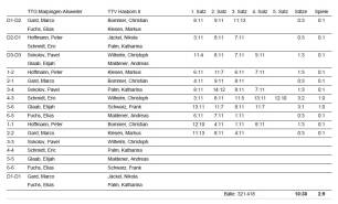 Dabei wurden zunächst alle 3 Anfangsdoppel durch Nikola Jäckel/Katharina Palm – Hoffmann/Schmidt, Christian Bommer/Markus Klesen – Gard/Fuchs und Christoph Wilhelm/Andreas Maldener – Sokolov/Glaab gewonnen.