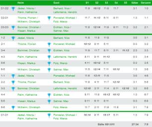 Die Einzel verliefen allerdings nicht mehr so ganz nach unserer Vorstellung, da hier nur 5 weitere Punkte durch Nikola Jäckel (2), Florian Thome, Christian Bommer und Christoph Wilhelm erzielt werden konnten, so dass am Ende eine knappe 7:9 Niederlage zu verzeichnen war.