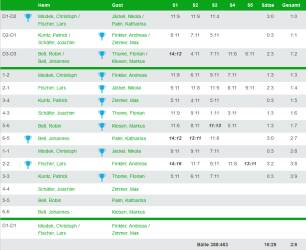 In den Einzeln konnte Nikola einmal mehr ihre gute Form durch 2 Siege gegen Miodek und Fischer im vordern Paarkreuz unter Beweis stellen. Andy konnte ebenfalls einen Sieg gegen Miodek beisteuern, musste sich aber in einem sehenswerten Spiel gegen Fischer in der Verlängerung des Entscheidungssatzes geschlagen geben.