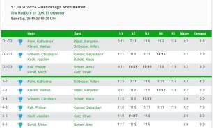 Ersatzverstärkt mit Katharina Palm und Markus Klesen im vorderen Paarkreuz, vielen Dank an die zwei für ihren Einsatz, gingen wir in teilweise sehr hart umkämpfte Spiele, die aber an diesem Abend alle zu unseren Gunsten liefen.