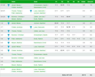 Das letzte Heimspiel der Vorrunde konnte unsere Mannschaft in der Aufstellung Nikola Jäckel Andy Finkler, Florian Thoma, Christian Bommer, Katharina Palm und Markus Klesen gegen das ersatzgeschwächte Team aus Heusweiler klar mit 9:2 gewinnen. Bei den Doppeln gewannen Nikola/Andy und Christian/Markus ihre Spiele jeweils deutlich, nur Florian/Katharina mussten sich dem gegnerischen Spitzendoppel Lava/Jochem geschlagen geben. In den Einzeln steuerte dann jeder jeweils einen Sieg bei, wobei Nikola sogar zwei Mal punkten konnte.