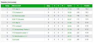 Mit 16:2 Punkte überwintern wir nun auf dem zweiten Tabellenplatz, punktgleich mit dem Tabellenersten TTF Illtal 3 und dem Tabellendritten, dem SV Remmesweiler.