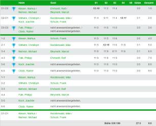 Im Spiel gegen den ersatzgeschwächten Tabellenletzten aus Fürth, der zudem nur mit 4 Spielern antreten konnte, erreichte unsere 2. Mannschaft in der Aufstellung Markus Klesen, Christoph Wilhelm, Michael Niehren, Philipp Falk, Joachim Koch und Rainer Clodo einen klaren Sieg.