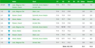 Gegen die wesentlich jüngeren und teilweise noch etwas überforderten Gegner aus Merzig konnte unsere Mannschaft in der Besetzung Magnus Latz, David Klesen und Maike Weier einen klaren 10:0 Erfolg verbuchen. Dabei musste lediglich Maike einen Satz an Ihre Gegnerin abgeben.