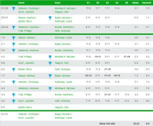 Im Heimspiel gegen den TTC Neuweiler konnte die 2. Mannschaft durch eine geschlossene Mannschaftsleistung einen wichtigen Erfolg im Kampf um den Klassenerhalt verbuchen. Hervorzuheben ist hierbei Christoph Wilhelm, der sowohl sein Doppel mit Joachim Koch als auch seine beiden Einzel gewinnen konnte. Die weiteren Punkte für unsere Mannschaft erzielten das Doppel Andi Maldener/Philipp Falk und in den Einzeln Markus Klesen, Andi Maldener, Philipp Falk, Joachim Koch und Mirko Bartel.