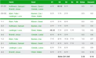 Hierbei zeigte jeder Spieler und jede Spielerin eine konzentrierte Leistung und konnte so jeweils ein Doppel und 2 Einzelsiege zum Gesamterfolg beisteuern.