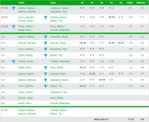 Unsere 2. Mannschaft erwischte in der Partie gegen den Tabellennachbarn aus Oberwürzbach keinen guten Tag und musste in der Aufstellung Markus Klesen, Michael Niehren, Joachim Koch, Rainer Clodo, Jonas Scheer und Mirko Bartel eine deutliche 9:3-Niederlage hinnehmen.