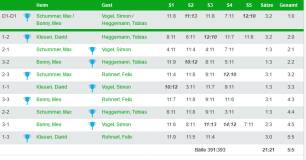 Die Punkte für uns erzielten das Doppel Max/Meo und in den Einzeln David (2), Max und Meo.