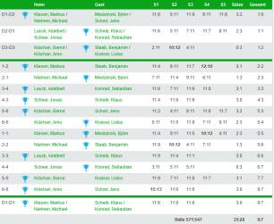 In der Aufstellung Markus Klesen, Michael Niehren, Adalbert Lauck, Jonas Scheer, Bernd Krächan und Arno Krächan konnte dabei das Doppel Markus/Michael zweimal punkten. In den Einzeln steuerten dann Markus (1), Adi (2), Jonas (1), Bernd (2) und Arno (1) jeweils die nötigen Siege für diese tolle Mannschaftsleistung bei.