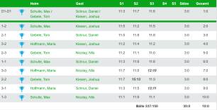 Gegen den verlustpunktfreien Tabellenführer war unsere Mannschaft mit Daniel Schur, Joshua Klesen und Nils Nicolay totz einiger enger Satzergebnisse leider chancenlos.