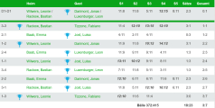 Bei der unglücklichen 3:7 Heimniederlage der U15 gegen Merchweiler-Hüttigweiler wäre durchaus mehr drin gewesen. Insgesamt 3 knappe 5-Satz-Niederlagen verhinderten ein besseres Ergebnis. In der Besetzung Leonie Wilwers, Emma Baab und Bastian Rackow konnten Leonie (2) und Bastian in den Einzeln für uns punkten.