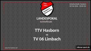 Heute um 20.00 Uhr findet in der Schulturnhalle Hasborn das Achtelfinale gegen den Drittligisten TV 06 Limbach statt.