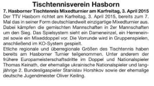 Am Karfreitag, 3. April 2015 findet zum 7. Mal das Hasborner Mixedturnier statt. Anbei ein Vorbericht !