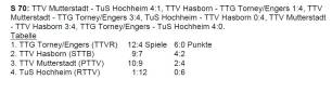 Einen tollen Erfolg verzeichneten Dietmar Böttcher, Winfried Krächan und Horst Scheid bei den Ü-70 Südwestmeisterschaften im pfälzischen Waldfischbach. Durch Siege gegen Mutterstadt (4:3) und Worms-Hochheim (4:0) bei einer Niederlage gegen Torney-Engers (1:4) erreichte das Trio den 2. Platz. Herzlichen Glückwunsch zu dieser grandiosen Leistung.